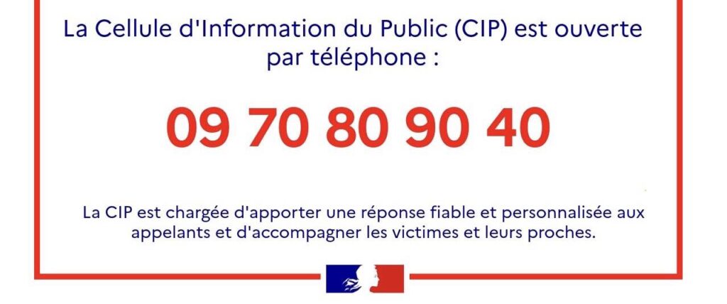 2. Ouverture de la Cellule d’Information au Public à partir de 12h au numéro suivant : 09 70 80 90 40