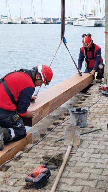 Côté bassin N°1 un grand chantier de remplacement des poutres de quai est en cours. Ce renforcement des infrastructures offre désormais un meilleur confort d’accostage et d’amarrage pour l’ensemble des plaisanciers avec le choix de matériaux durables, reconnus pour être imputrescibles, extrêmement résistants et parfaitement adaptés aux environnements maritimes.