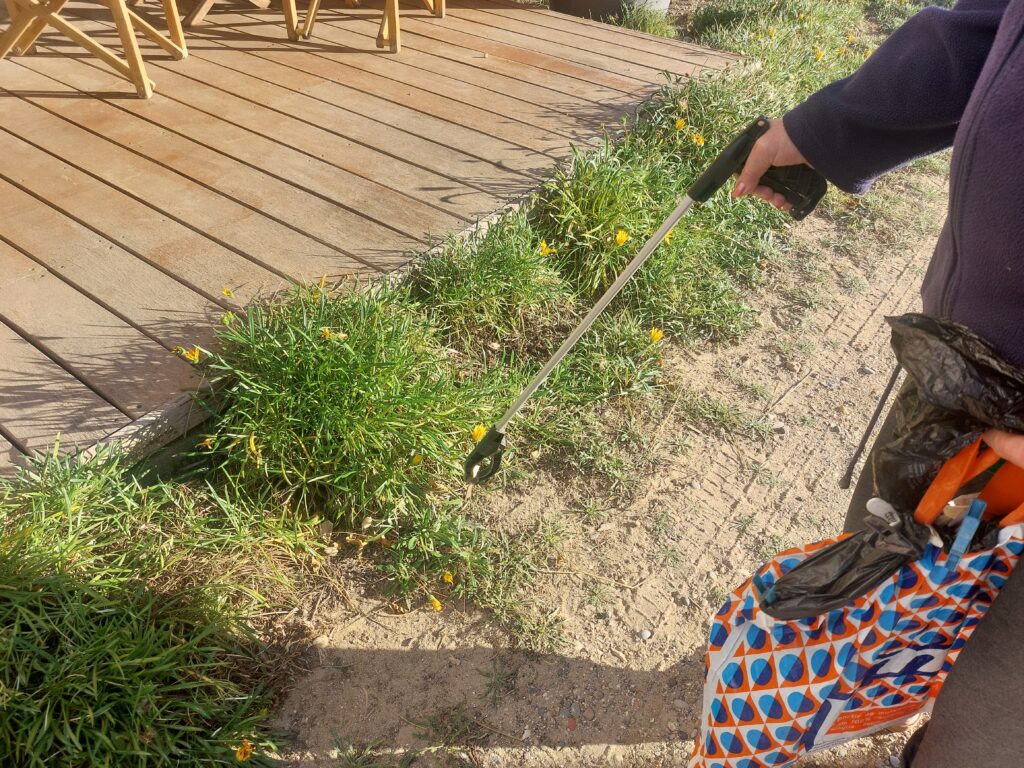 Nous avons rencontré Mme V., retraitée qui habite à l’année aux Chalets. Au quotidien elle arpente son quartier équipée d’une petite pince et de petits sacs : elle ramasse les déchets.