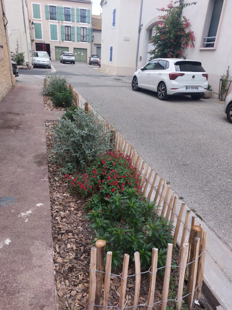 Les traditionnelles jardinières sont peu à peu supprimées et remplacées par des aménagements végétaux à même le sol. Des plantes adaptées, des économies d’eau et une végétalisation plus abondante qui apporte fraicheur, embellissement et favorise la biodiversité.