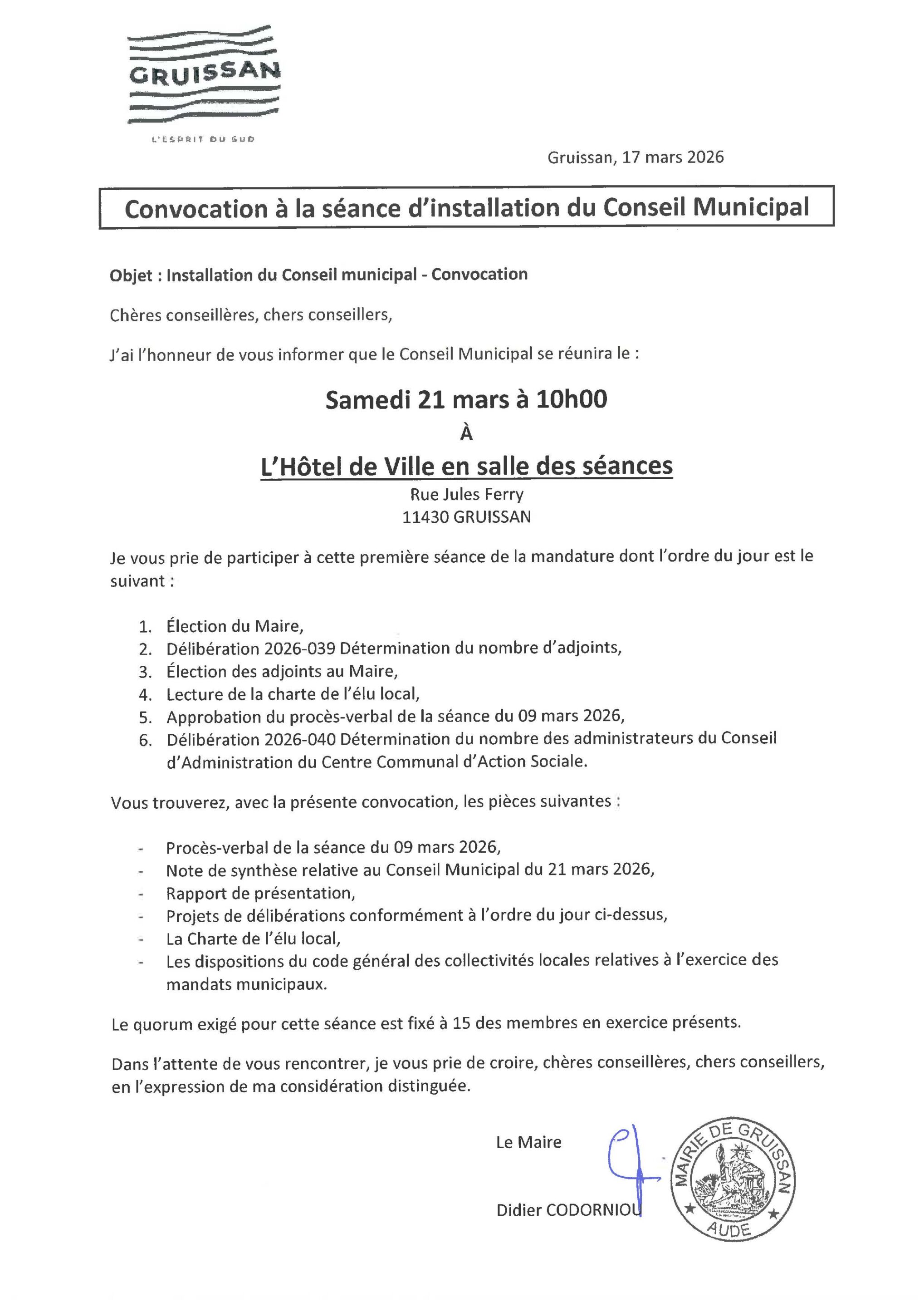 Séance d’installation du Conseil Municipal