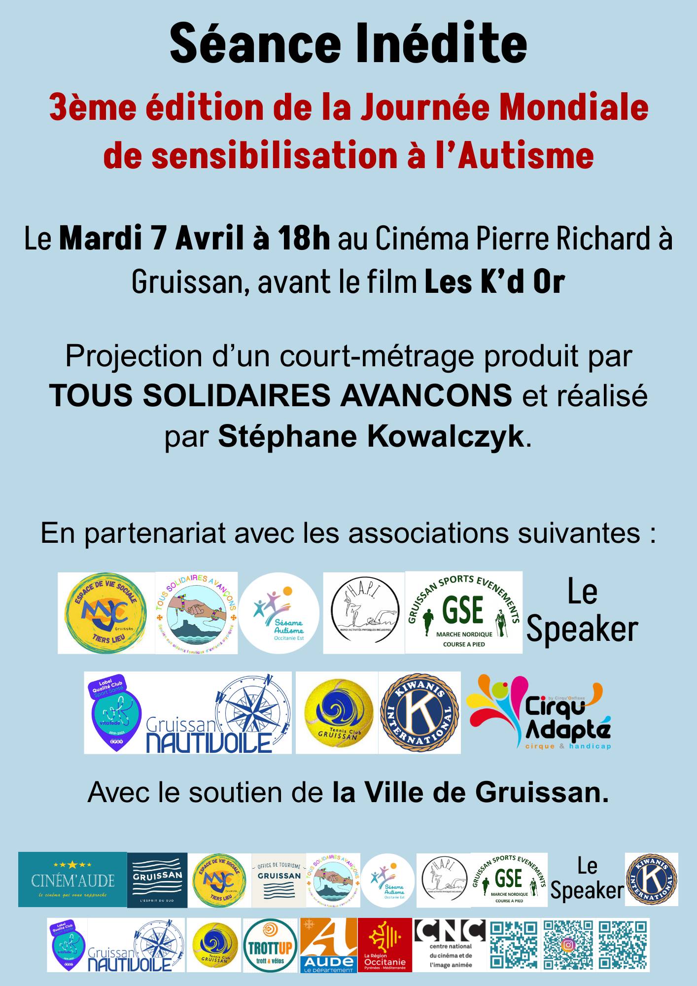 L’association Tous Solidaires Avançons vous propose un court-métrage réalisé par Stéphane Kowalczyk pour la 3e édition de la Journée Mondiale de sensibilisation à l’autisme.