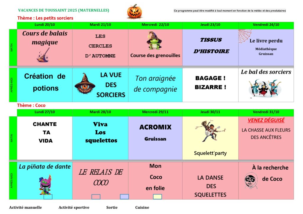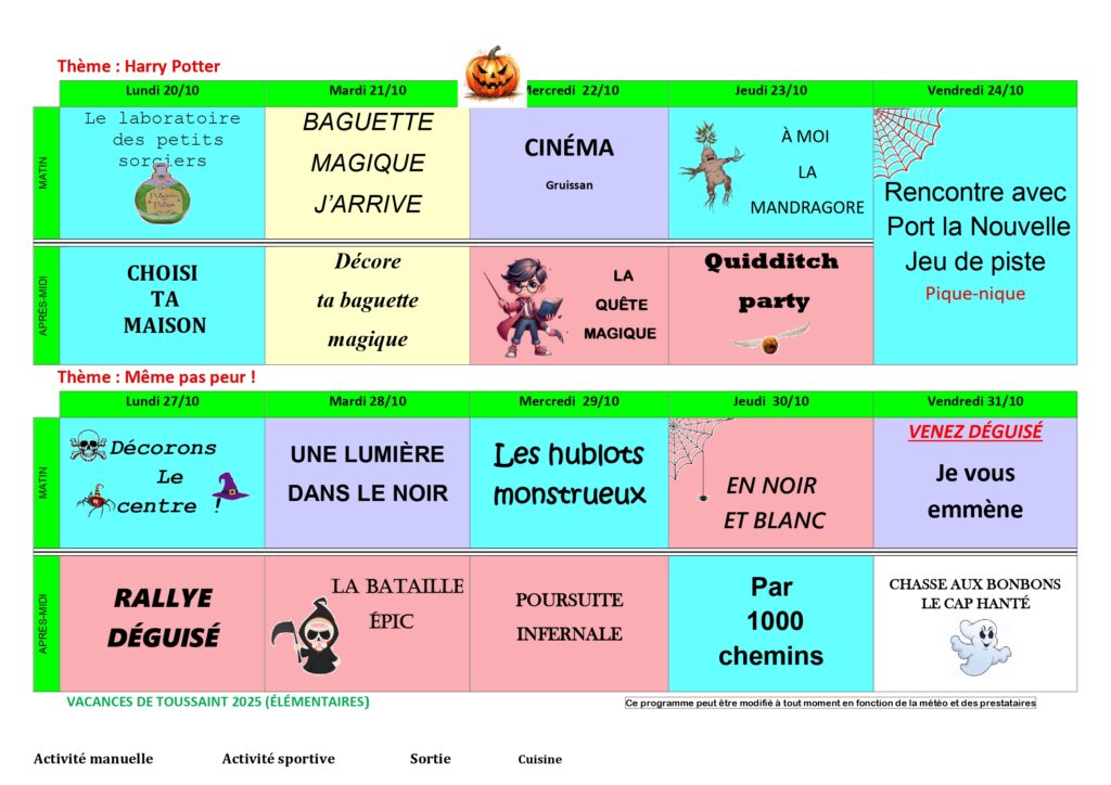 PROGRAMME des VACANCES DE LA TOUSSAINT