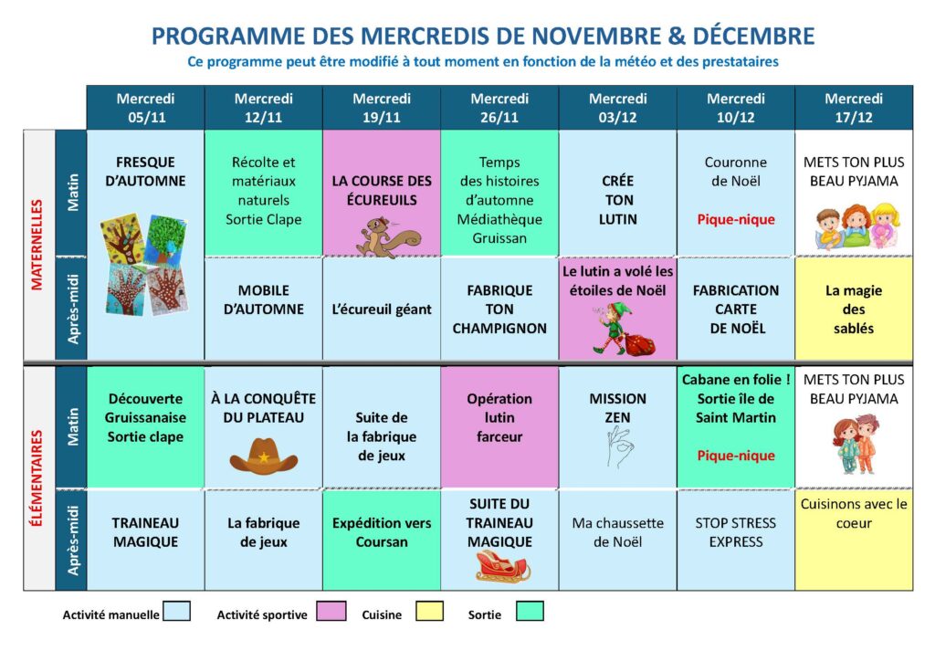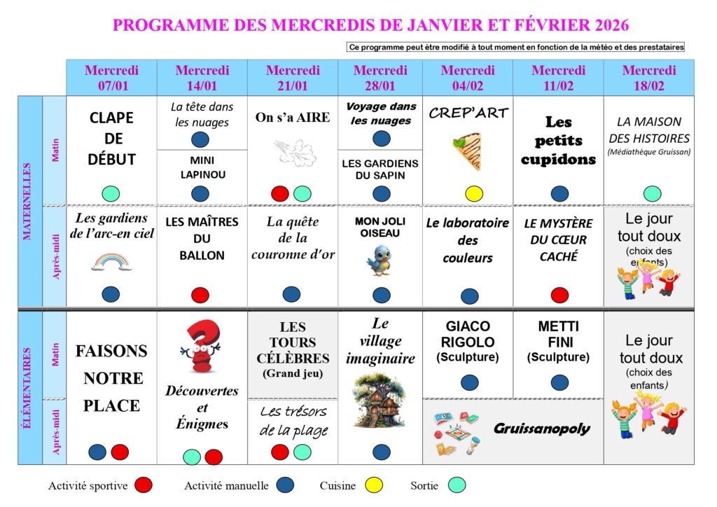 PROGRAMME des mercredis