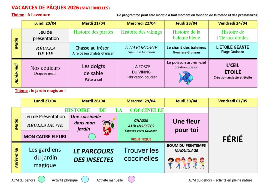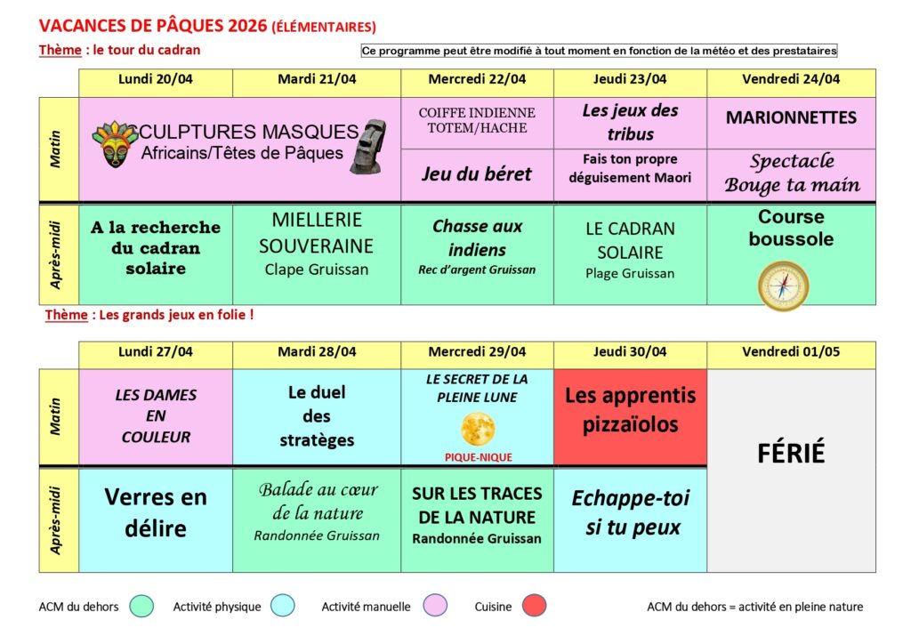 De nombreuses activités sont proposées par une équipe d’animateurs diplômés : activités manuelles, physique, de la cuisine, des jeux de construction, d’extérieur et des jeux libres.