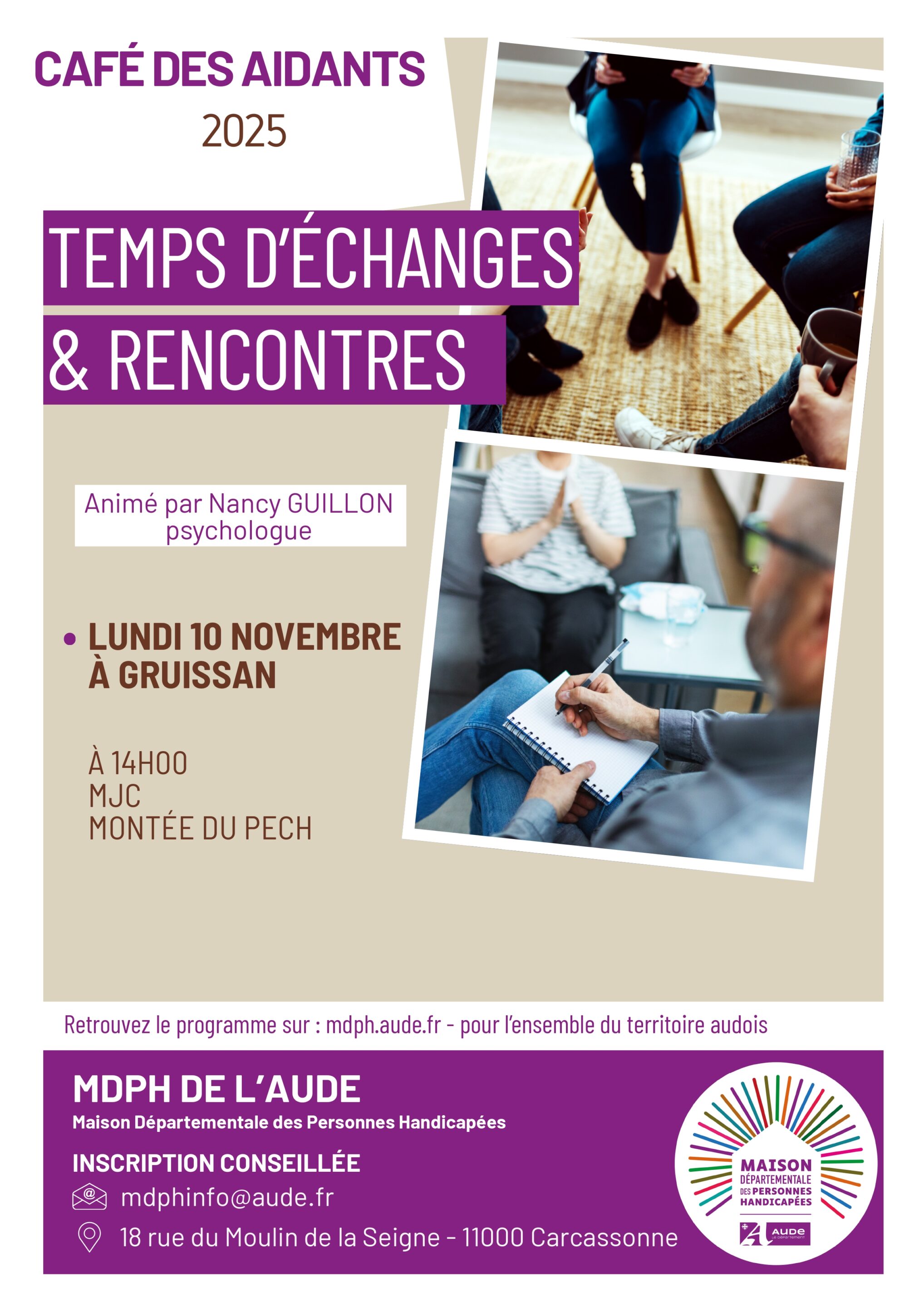 Cette animation, proposé par la MDPH, consistera en un temps d’échange et de rencontres pour les personnes aidantes de personnes.