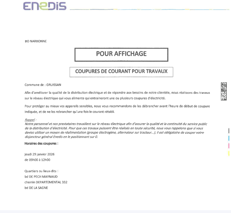 Coupure d’électricité pour Travaux le jeudi 29/01/2025 par ENEDIS – Port Rive Gauche de 9h à 12h