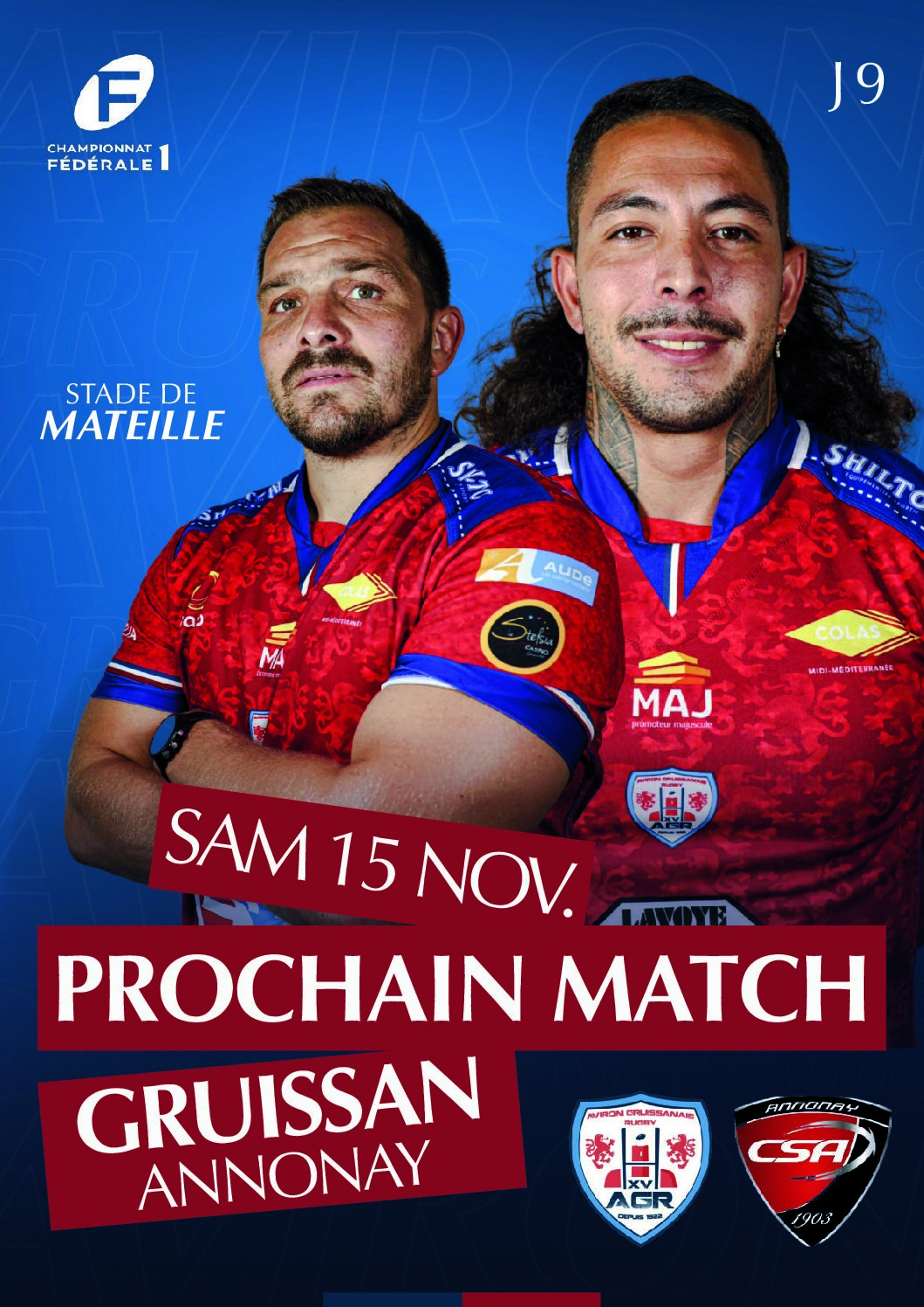Samedi 15 novembre à 16h pour les Espoirs & à 18h15 pour la Fédérale 1 – Stade de Mateille
