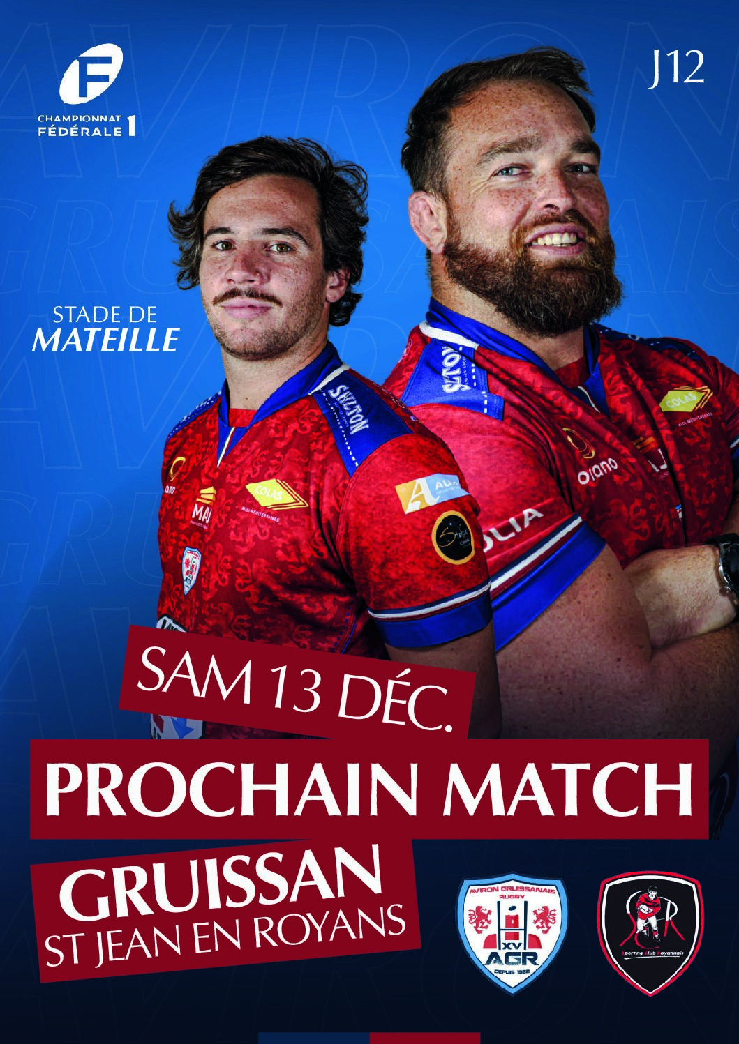 Samedi 13 décembre à 16h pour les Espoirs & à 18h15 pour la Fédérale 1 – Stade de Mateille
