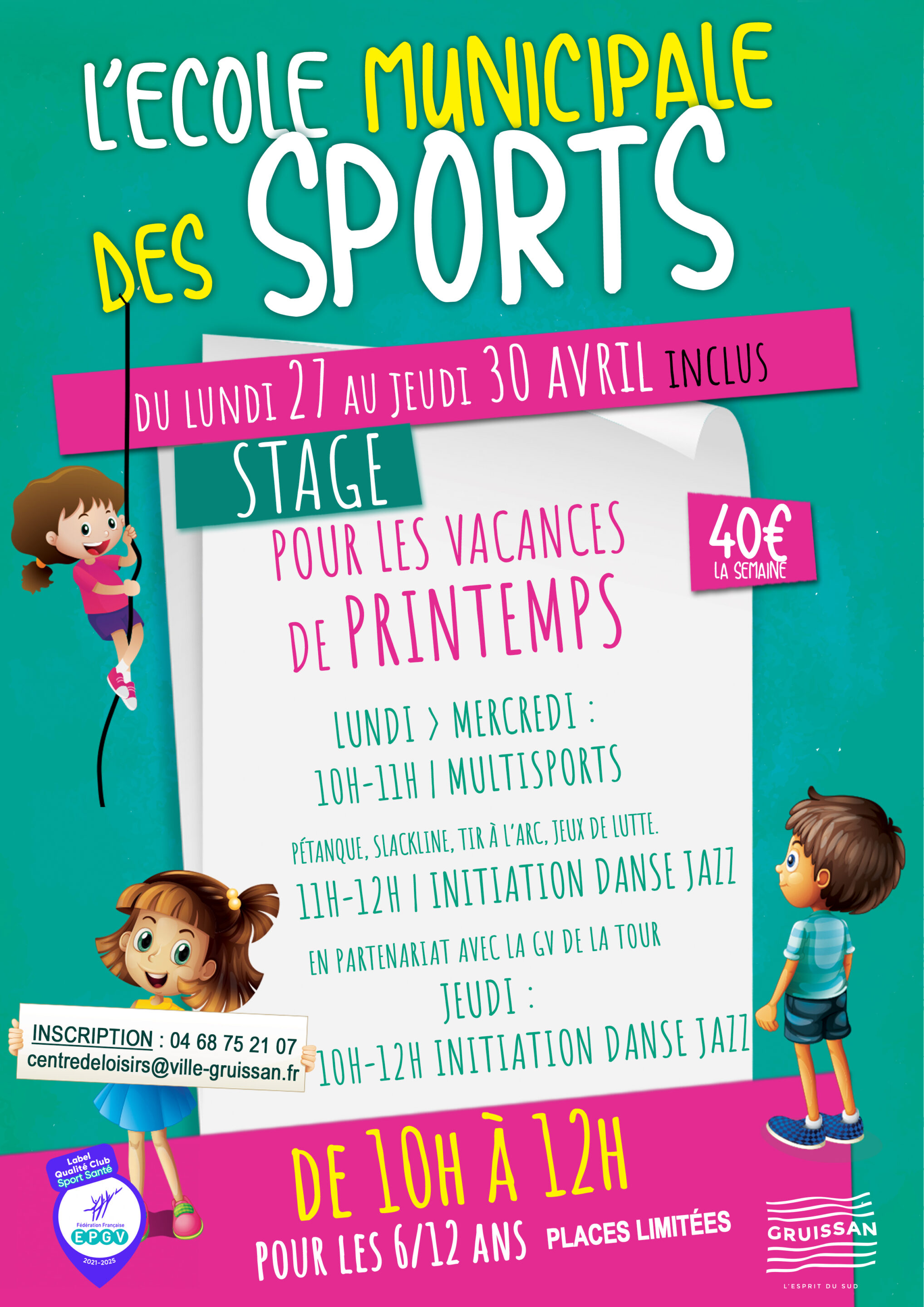 Inscription au 04 68 75 21 07 ou centredeloisirs@ville-gruissan.fr